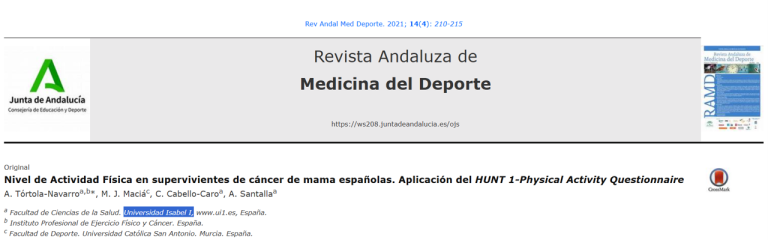 Nivel de Actividad Física en supervivientes de cáncer de mama españolas. Aplicación del HUNT 1-Physical Activity Questionnaire