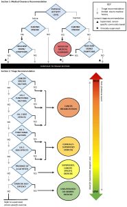 A partir de ahí, el desarrollo del algoritmo EXCEEDS parte del nivel de actividad física del paciente, la existencia de patologías crónicas, que pueden requerir la obtención de una autorización por parte del médico, y a partir de ahí, se agrupan el resto de dominios: cuestiones específicas del cáncer, efectos secundarios, presencia de catéteres y nivel de autoeficacia.